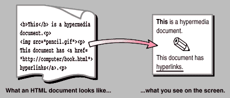 Qu'est-ce que le HTML?If he were still with us today, André Bazin might tell you that although HTML sounds complicated (it stands for HyperText Markup Language), it is basically just a way to format plain (ASCII) text so that your World Wide Web browser may read and display it in a graphically interesting fashion. In a sense, it works like a regular word processor in that it introduces special codes in the text (called markup tags) that are interpreted as "paragraph," "underlined" or "italic," for instance.